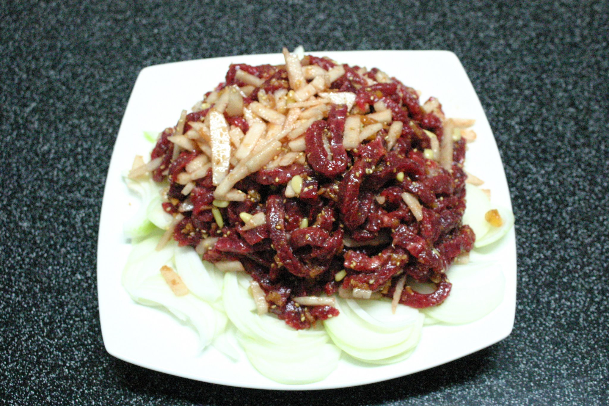 가끔 집에서 만들어 먹는 육회 한 접시.